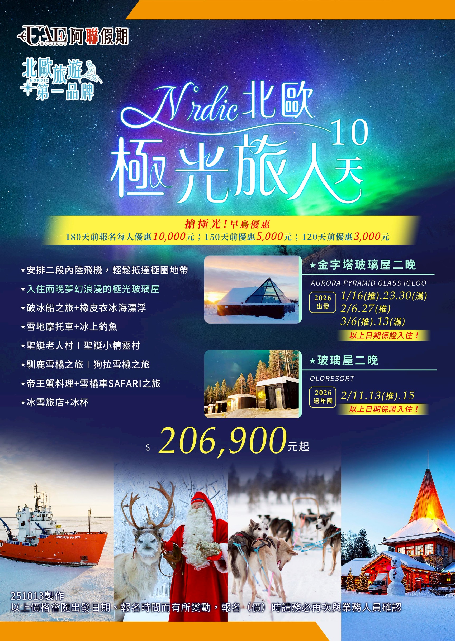 🌈北歐極光旅人~帝王蟹玻璃屋破冰船探險10天