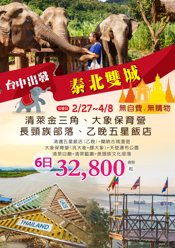 泰北雙城~清萊金三角、大象保育營、長頸族部落、乙晚五星飯店 六日